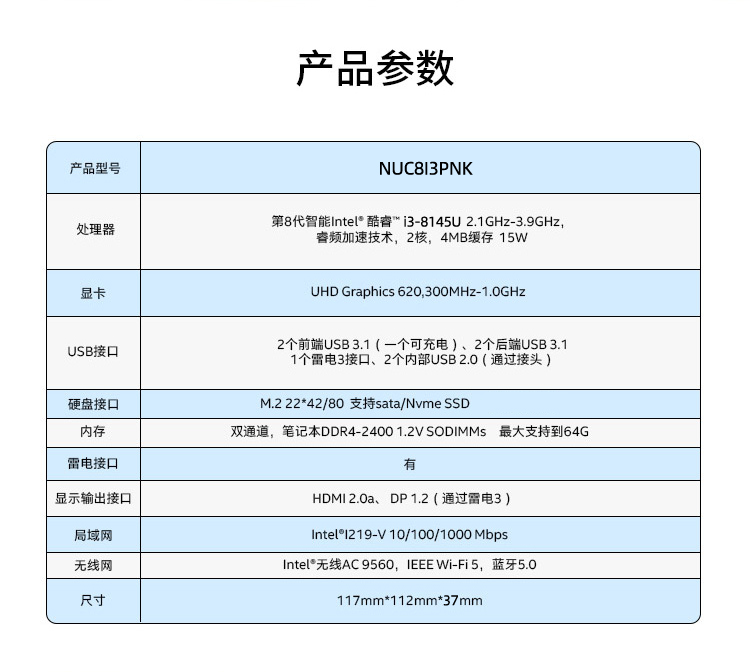 第8代英特尔(Intel)普罗沃峡谷 NUC8I3PNH 商用小型迷你电脑 工控机 准系统