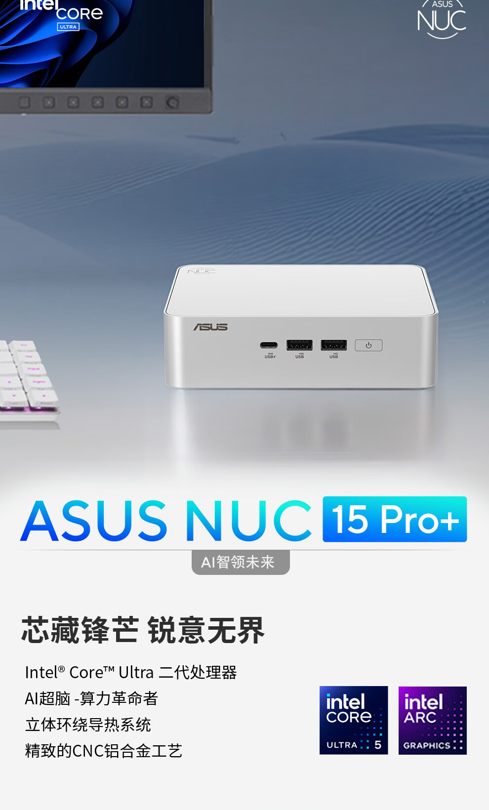 华硕(ASUS)NUC15 Pro+ mini迷你主机高性能商用AI办公台式机电脑