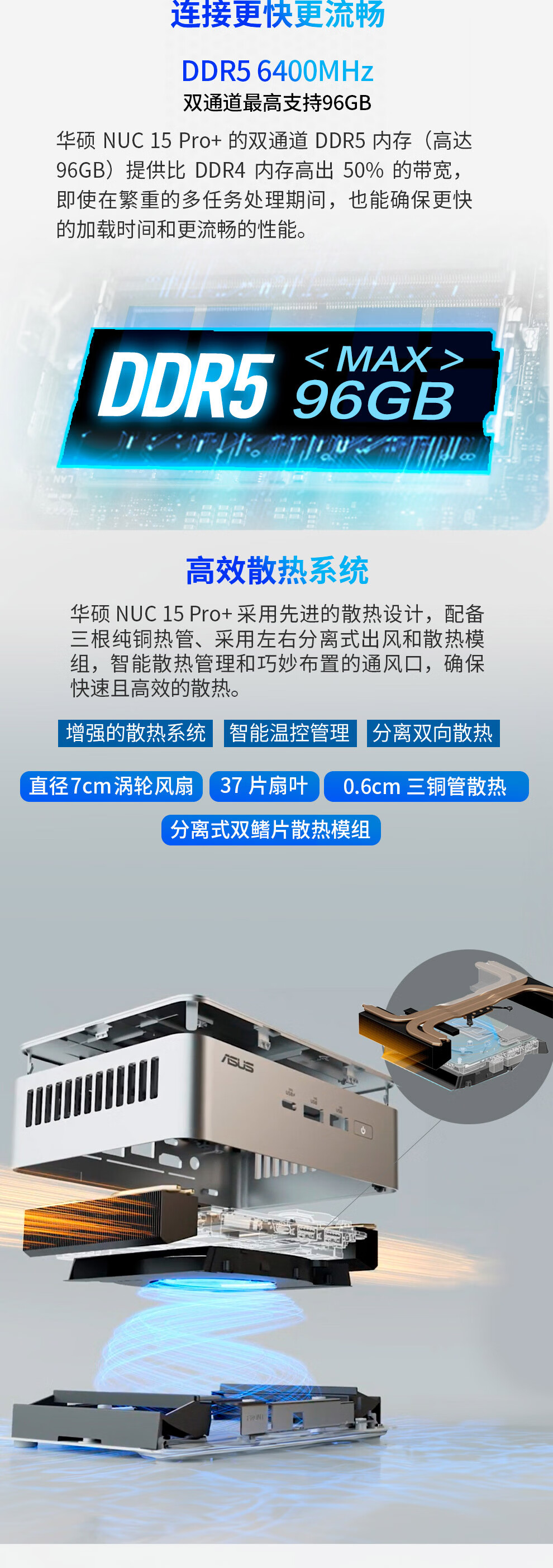 支持双通道DDR5-6400MHz,最大支持96GB